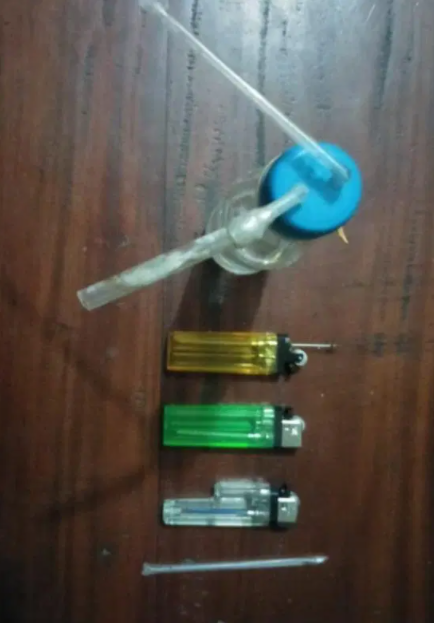 “Kemudian satu buah bong lengkap dengan pipet terbuat dari botol lasegar, satu mancis warna kuning lengkap dengan jarum suntik, satu mancis warna biru, satu plastik tembus pandang dan pipet berbentuk sekop,” terangnya.