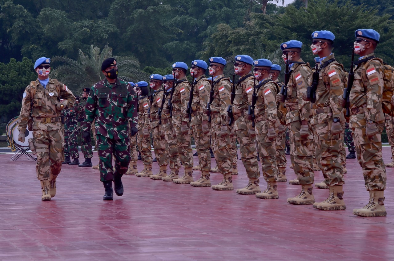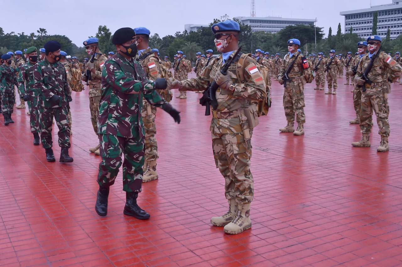 Demikian sambutan tertulis Panglima TNI Marsekal TNI Dr. (H.C.) Hadi Tjahjanto, S.I.P yang dibacakan oleh Inspektur Jenderal (Irjen) TNI Letjen TNI (Mar) Bambang Suswantono, S.H., M.H., M.Tr. dalam upacara pemberangkatan Satgas BGC Konga XXXIX-C MONUSCO TA. 2021, bertempat di Plaza Mabes TNI, Cilangkap, Jakarta, Kamis (14/1/2021).