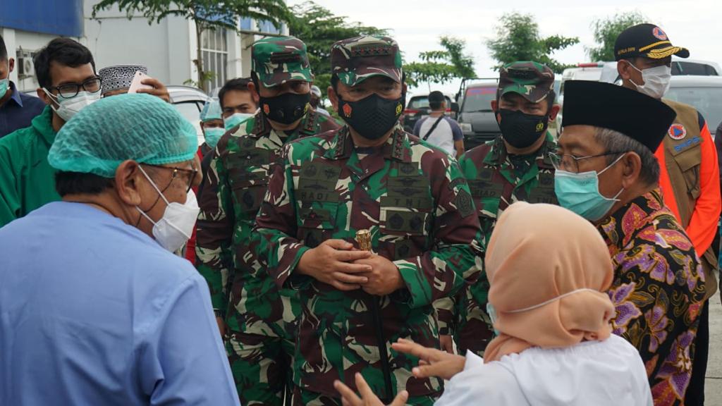 Panglima TNI juga membawa bantuan berupa, 7 Unit Tenda TNI, 1200 Tikar Plastik, 1000 selimut, 1000 dus mie instan, 2000 sarung, 100.000 masker medis, 170 box obat obatan, 432 box vitamin dan 300 dus air mineral botol. (KH/ER)