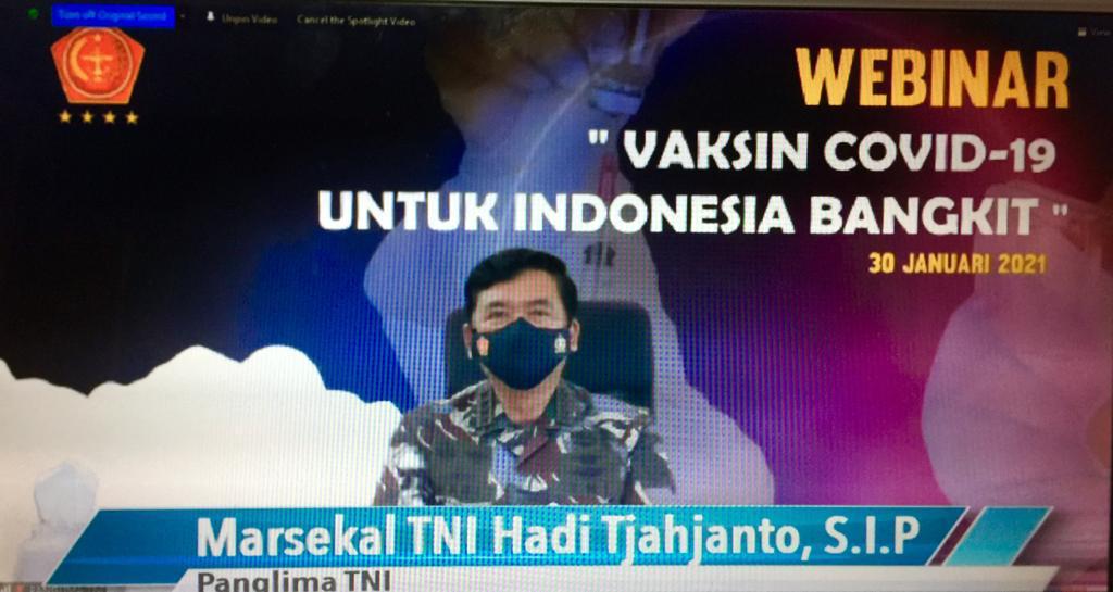 Jakarta, DUTAMEDAN.COM – “Dalam mendukung vaksinasi nasional tersebut TNI telah menyiapkan personel, material dan Alutsista untuk mengawal dan mengamankan distribusi Vaksin Covid-19 ke daerah-daerah,” tegas Panglima TNI Marsekal TNI Hadi Tjahjanto, S.I.P. saat menjadi pembicara kunci pada Webinar bertajuk “Vaksin Covid-19 Untuk Indonesia Bangkit”, Sabtu (30/1/2021).