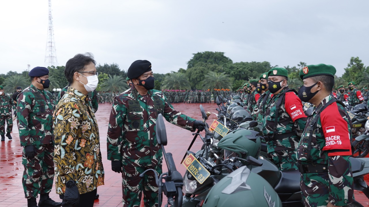 “Apel gelar kekuatan bagi tenaga vaksinator maupun tracer TNI yang kita lanjutkan dengan pelatihan atau Training Of Trainer (TOT) diikuti seluruh anggota Bintara Pembina Desa (Babinsa), Bintara Pembina Potensi Maritim (Babinpotmar) dan Bintara Pembina Potensi Dirgantara (Babinpotdirga),” ujar Panglima TNI.