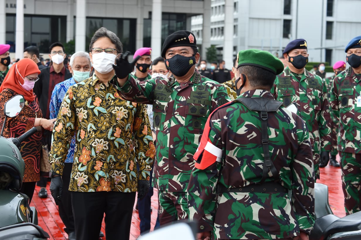Pada kesempatan yang sama, Menteri Kesehatan RI Ir. Budi Gunadi Sadikin CHFC., CLU. mengatakan bahwa Pandemi Covid-19 adalah perang menghadapi virus SARSCov-2. Itu sebabnya Kemenkes RI bekerja sama dengan TNI dan Polri untuk mengatasi perang ini. “Perang ini harus dimulai dengan tujuan yang jelas yaitu mengurangi laju penyebaran virus,” ucapnya.