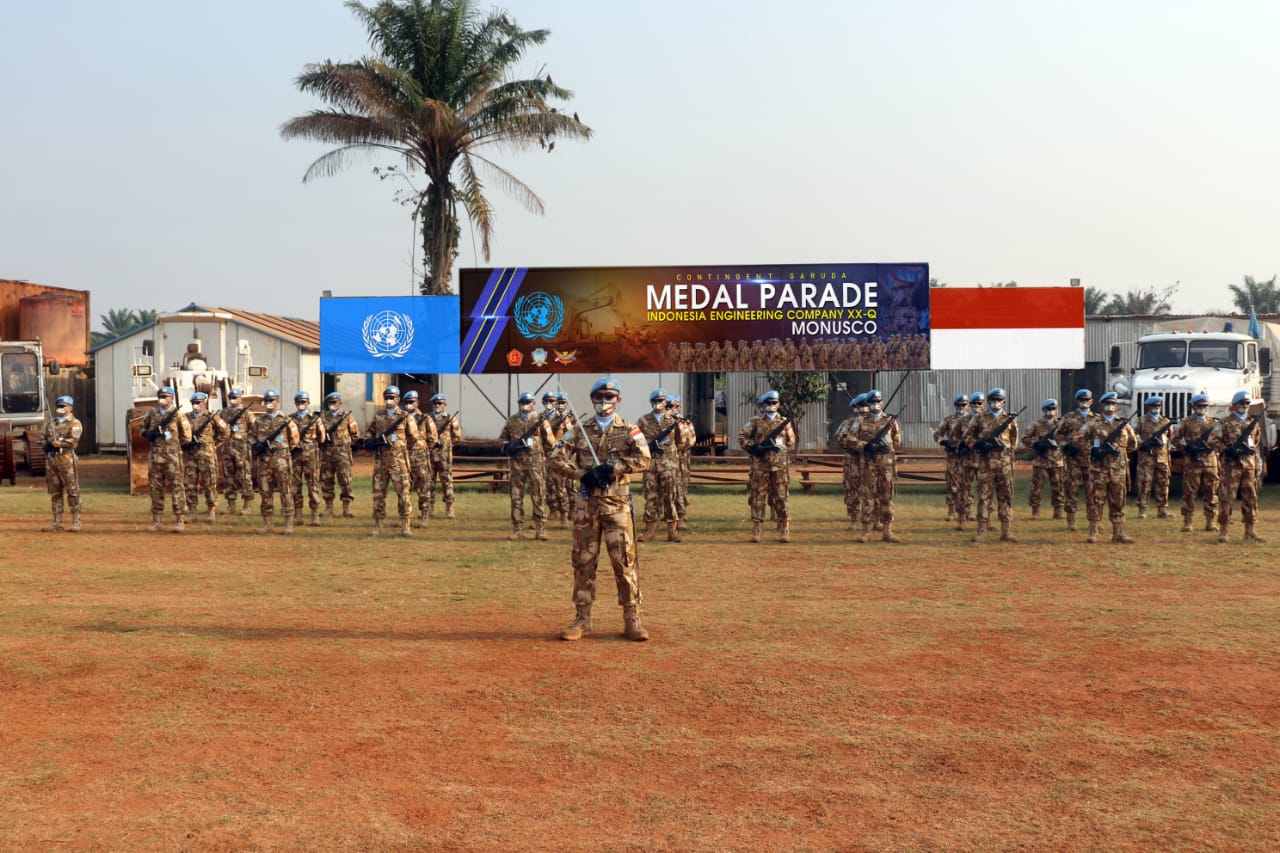 Demikian dikatakan Komandan Satuan Tugas (Dansatgas) Kompi Zeni (Kizi) Kontingen Garuda (Konga) XX-Q/Mission de LOrganisation des Nations Unies pour La Stabilisation En Republique Democratique du Congo (MONUSCO) Letkol Czi M.P. Sibuea, S.H., M.Han usai menyematkan medali penghargaan PBB kepada personel Satgas dalam Upacara Medal Parade, bertempat di Lapangan Bumi Nusantara Camp, Mavivi, Sabtu (13/02/2021).