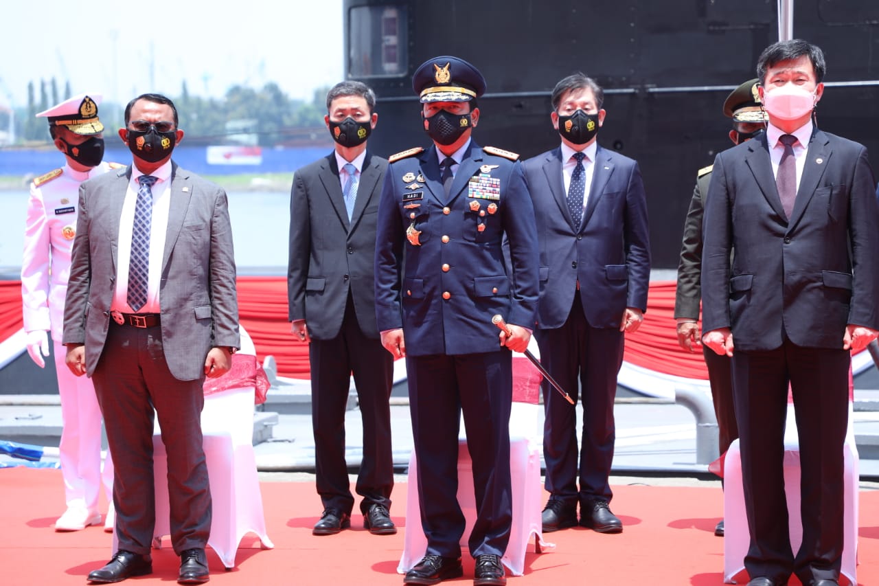 Jakarta, DUTAMEDAN.COM – Panglima TNI Marsekal TNI Hadi Tjahjanto, S.I.P. menghadiri acara Serah Terima Kapal Selam ke-3 KRI Alugoro-405, yang diserahterimakan dari PT. PAL kepada Menteri Pertahanan RI Letnan Jenderal TNI (Purn) Prabowo Subiyanto, bertempat di Galangan DSME – Okpo Korea Selatan dan PT PAL Indonesia, Surabaya, Rabu (17/3/2021).