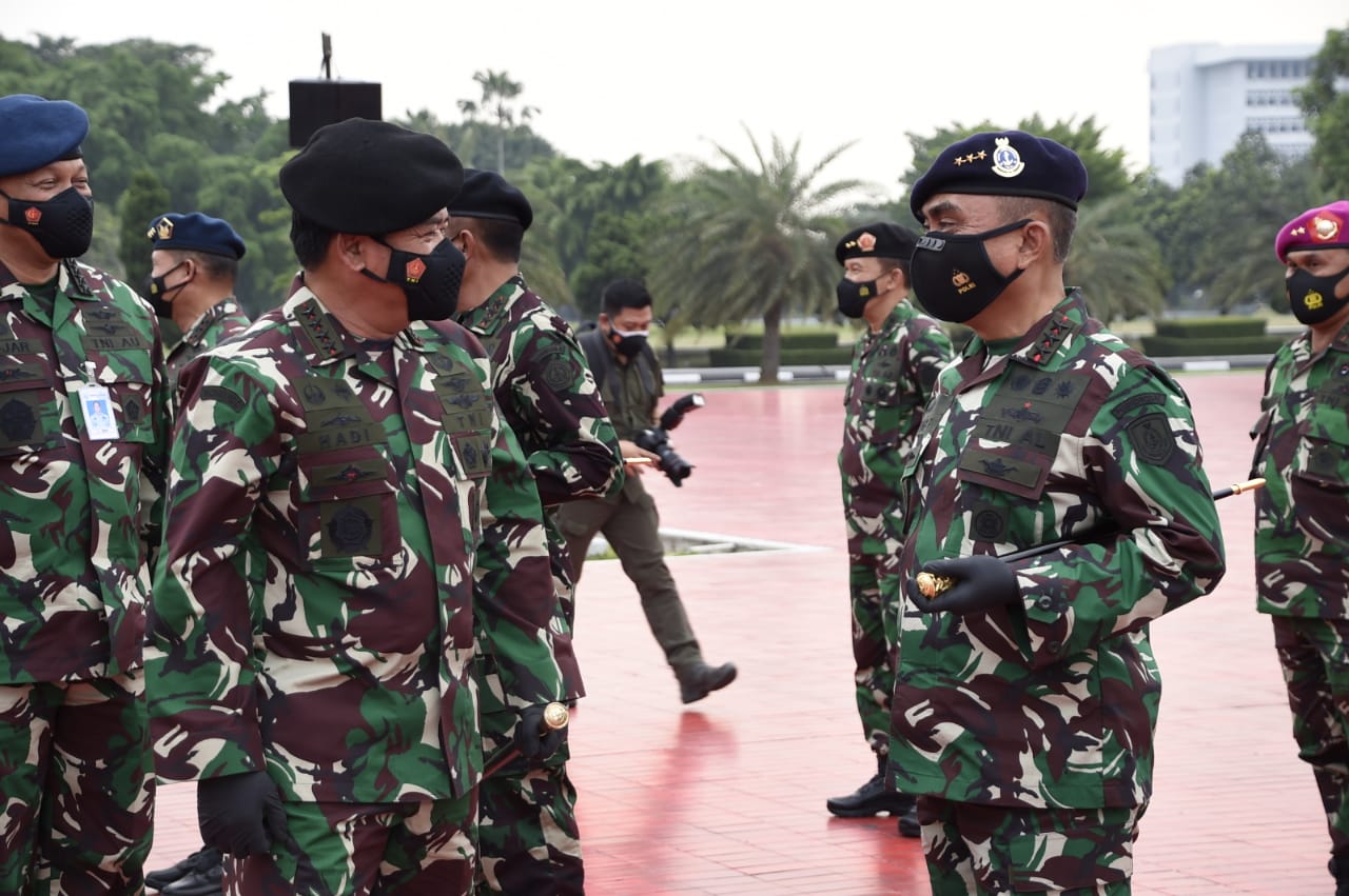 Panglima TNI Marsekal TNI Dr. (H.C.) Hadi Tjahjanto, S.I.P. menerima Laporan Korps Kenaikan Pangkat 57 Perwira Tinggi (Pati) TNI terdiri dari 16 Pati TNI AD, 23 Pati TNI AL dan 18 Pati TNI AU, bertempat di Mabes TNI, Cilangkap, Jakarta Timur, Rabu (17/3/2021).