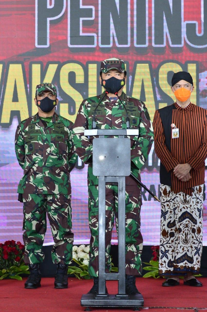 Pagi ini, Kamis (18/03/21) Panglima TNI Marsekal TNI Hadi Tjahjanto, S.I.P. bersama Kapolri Jenderal Pol Drs. Listyo Sigit Prabowo, M.Si., memimpin Serbuan Vaksinasi bagi Prajurit TNI, Anggota Polri serta Masyarakat yang berusia lanjut di kota Semarang.