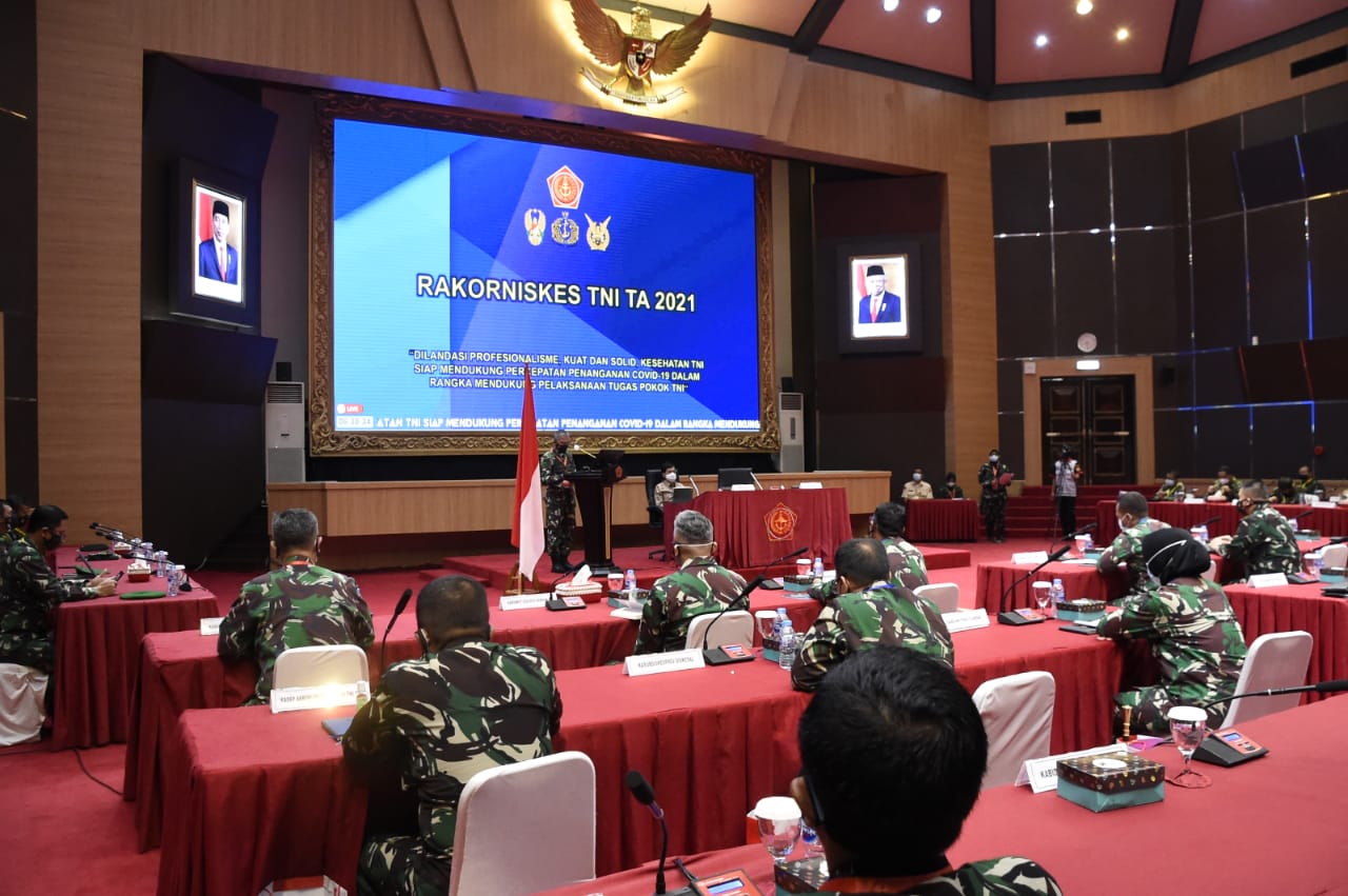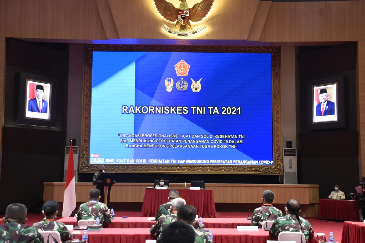 Hal tersebut dikatakan Kepala Staf Umum (Kasum) TNI Letjen TNI Ganip Warsito, S.E., M.M. dalam amanatnya yang dibacakan oleh Kepala Pusat Kesehatan (Kapuskes) TNI Mayjen TNI Dr. dr. Tugas Ratmono, Sp.S., MARS., M.H. saat membuka Rapat Koordinasi Teknis Kesehatan (Rakorniskes) TNI tahun 2021 di Aula Gatot Soebroto Mabes TNI, Cilangkap, Jakarta Timur, Selasa (23/3/2021).