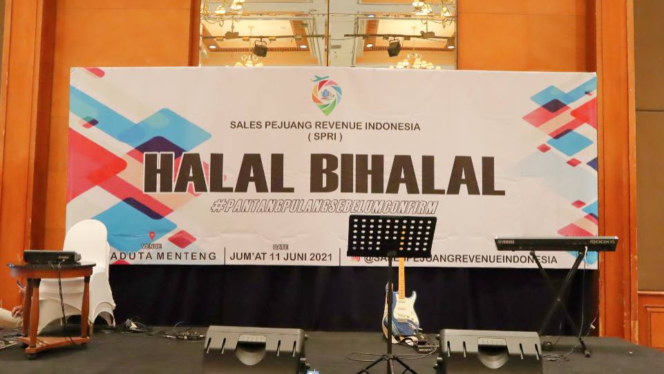 Stage and Backdrop Halal Bihalal SPRI yang digelar pada Jumat, 11 Juni 2021. (Dok. Istimewa) |
