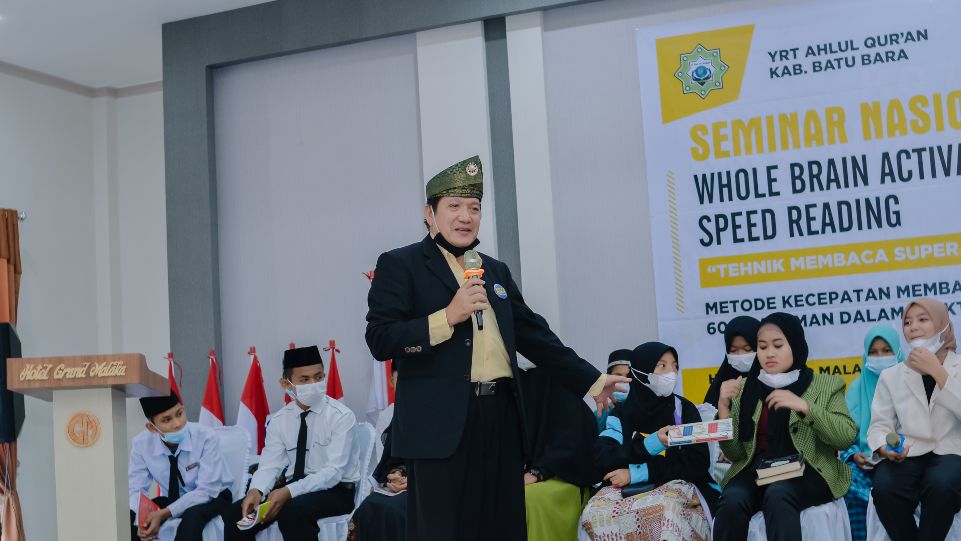 Seminar Nasional WBA Speed Reading tersebut menghadirkan Prof. Toha Maksum, M.M.Pd dari Surabaya sebagai Narasumber, dipesertai oleh 150 siswa dan santri dan seluruh pesantren dan rumah tahfidz, serta kalangan umum dan mahasiswa dari organisasi Islam yang ada di Kabupaten Batu Bara. Para peserta mengikuti acara tersebut dengan sangat antusias dan penuh rasa ingin tahu, karena keunikan metode yang diperkenalkan narasumber.