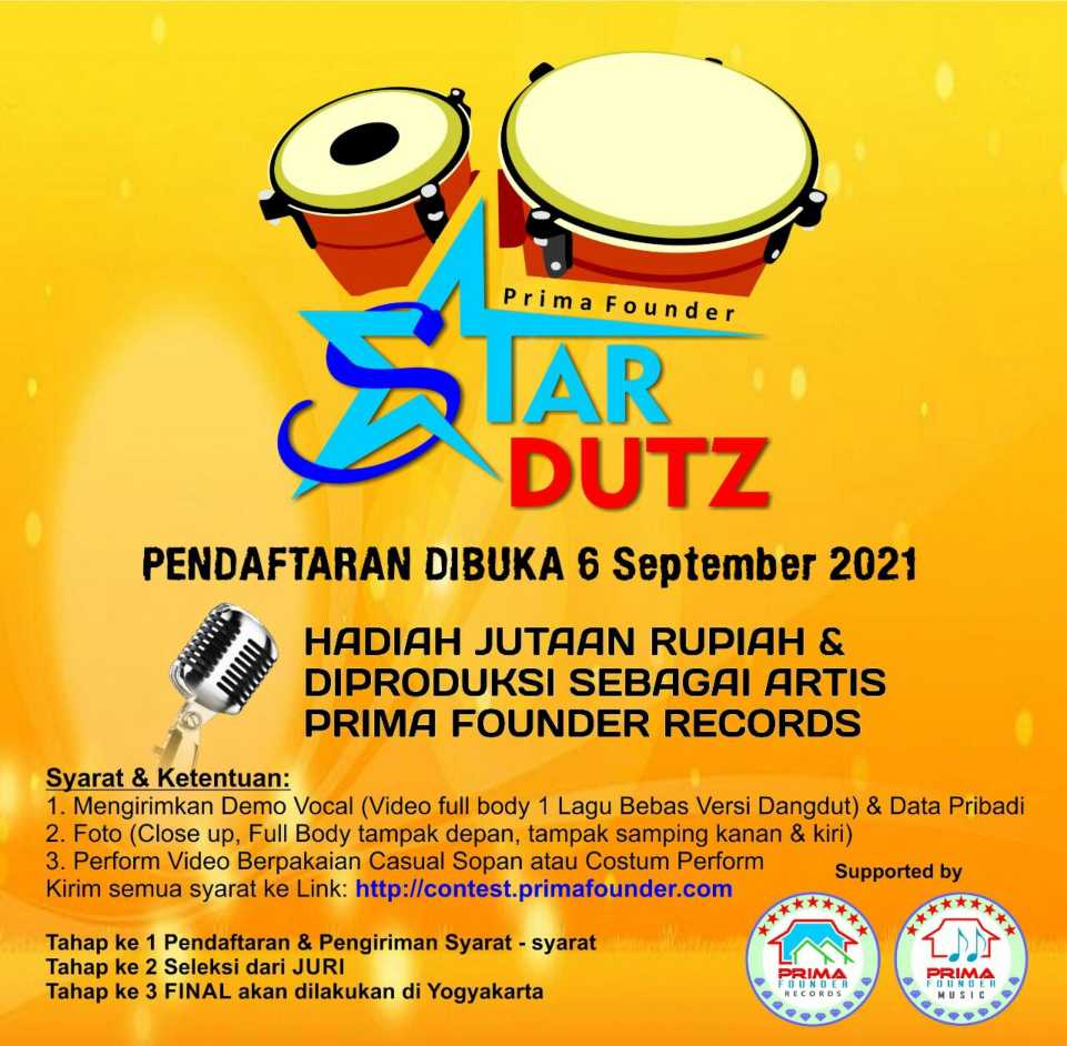 Prima Founder STARDUTZ akan menjadi ajang penemuan talent-talent musik dangdut berbakat di seluruh Indonesia. Metode seleksi yang tidak mengedepankan tatap muka memungkinkan untuk diikuti oleh berbagai peserta dari seluruh daerah di Tanah Air.
