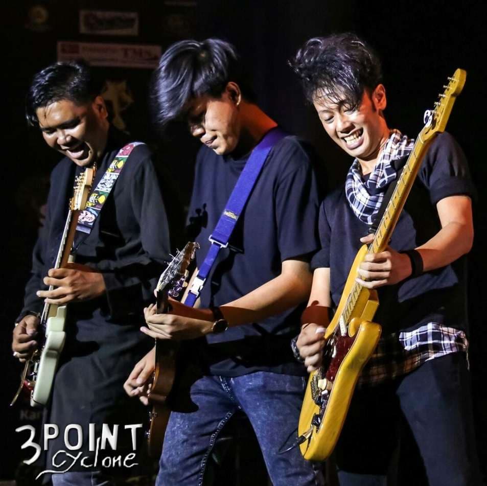 | Grup band 3 POINT saat live concert membawakan Cyclone di acara Gebyar Sumpah Pemuda 2021 pada Sabtu, 30 Oktober 2021 di Gedung Pusat Perfilman Usmar Ismail – Jakarta. (Dok. 3 Point Guitars) |