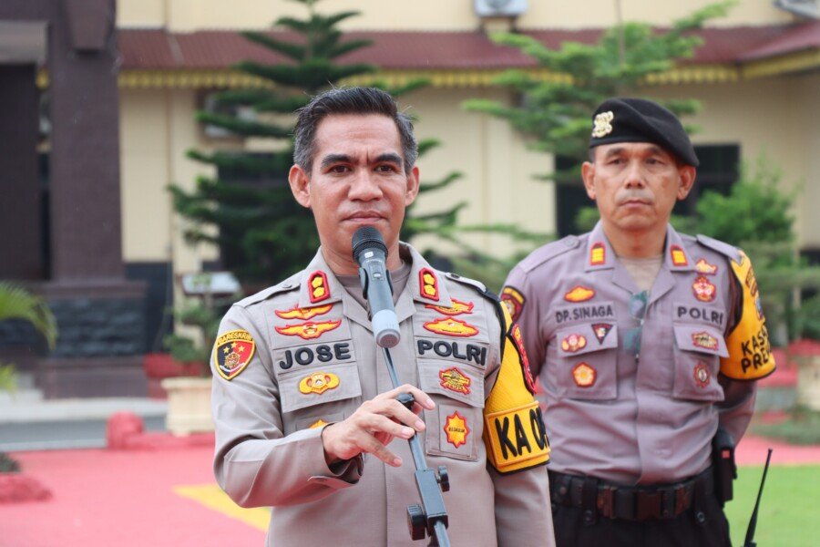 Kapolres Batubara, AKBP Jose D.C Fernandes, S.IK cek kesiapan pelatihan Ton Dalmas Polres Batubara. (Doc. Humas Polres Batubara).