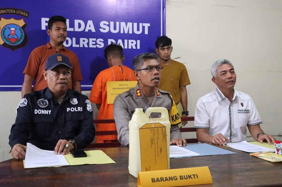 Kapolres Dairi AKBP Agus Bahari mengatakan, tersangka diringkus dari tempat persembunyiannya di Provinsi Jambi – Tanjung Jambu.