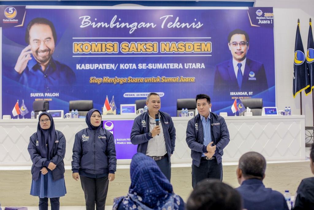 Acara Bimtek Saksi NasDem ini dilaksanakan di Kantor DPW Partai NasDem Sumut dan dibuka oleh Ketua Bappilu DPW Partai NasDem, Salman Ginting.