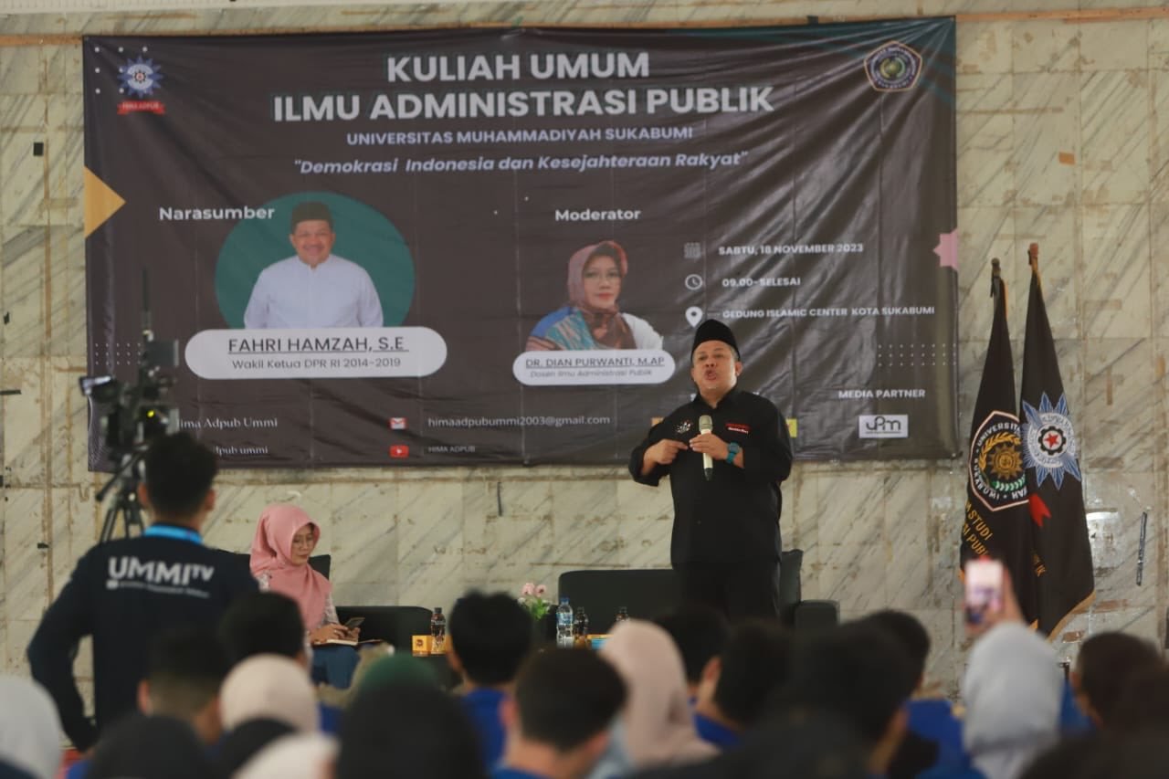 “Apa yang terjadi belakangan ini, sebagai isu dalam Pilpres, kita perlu hati-hati, terutama di dunia akademik. Jangan sampai terjebak sama perdebatannya para politisi,” kata Fahri Hamzah saat memberikan Kuliah Umum Ilmu Administrasi Publik di Universitas Muhammadiyah Sukabumi, Sabtu (18/11/2023).