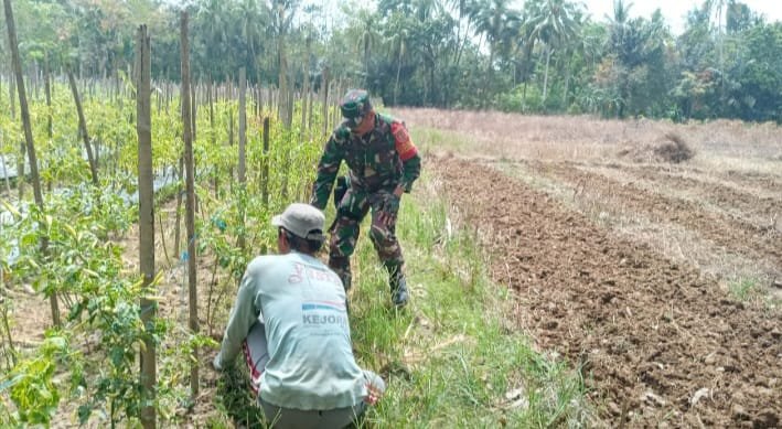 Bentuk dukungan yang diberikan oleh Babinsa kepada petani di desa binaan, salah satunya dengan Komsos (komunikasi sosial) langsung kepada petani sambil membantu petani baik mulai dari pengolahan atau penyiapan lahan, musim tanam, perawatan tanaman hingga waktunya panen,”imbuhnya