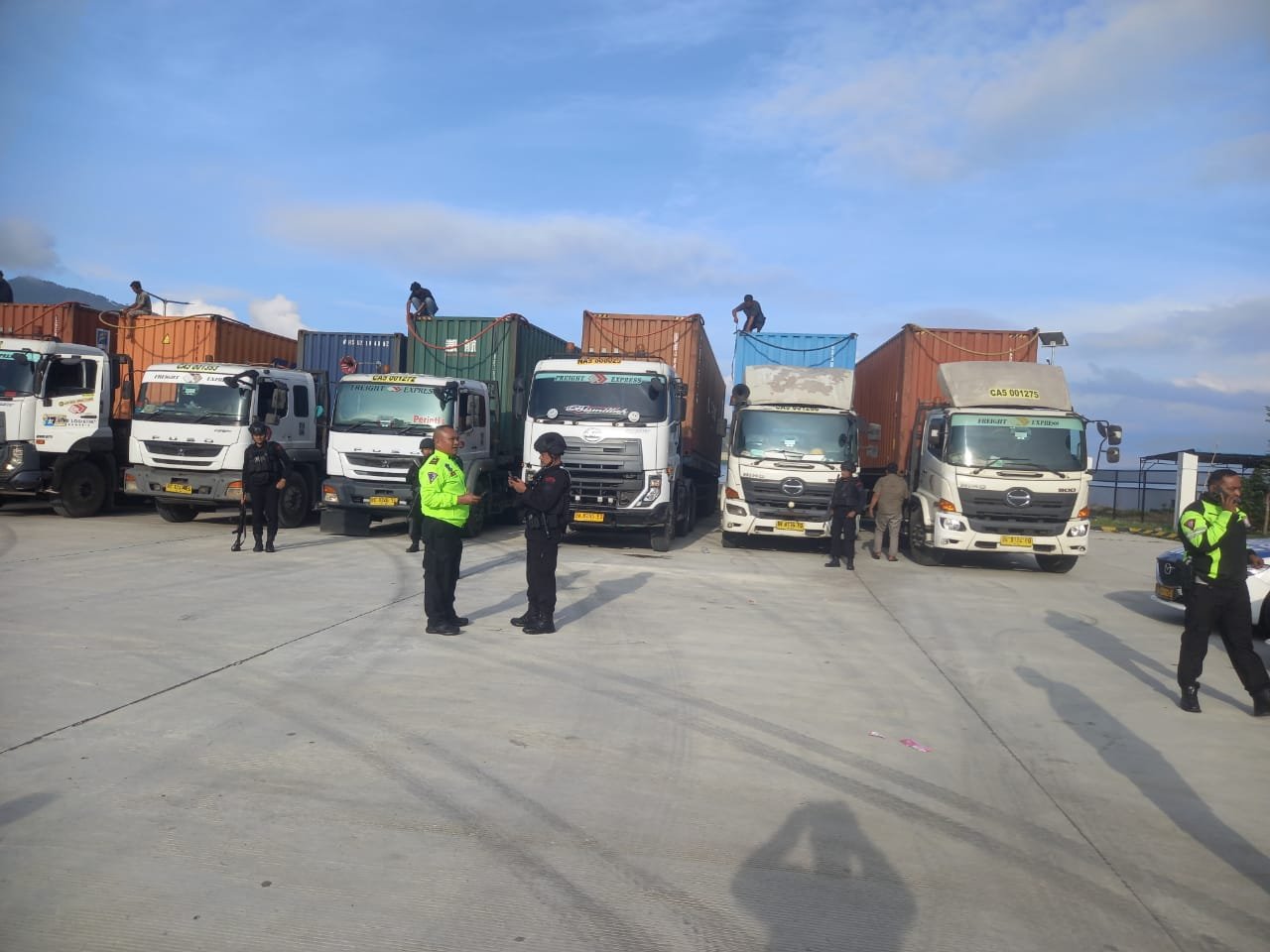 MEDAN, DUTAMEDAN.COM – Tim Polda Sumut melaksanakan pengawalan truk kontainer yang membawa perlengkapan serta logistik para peserta Aquabike Jetski Danau Toba.