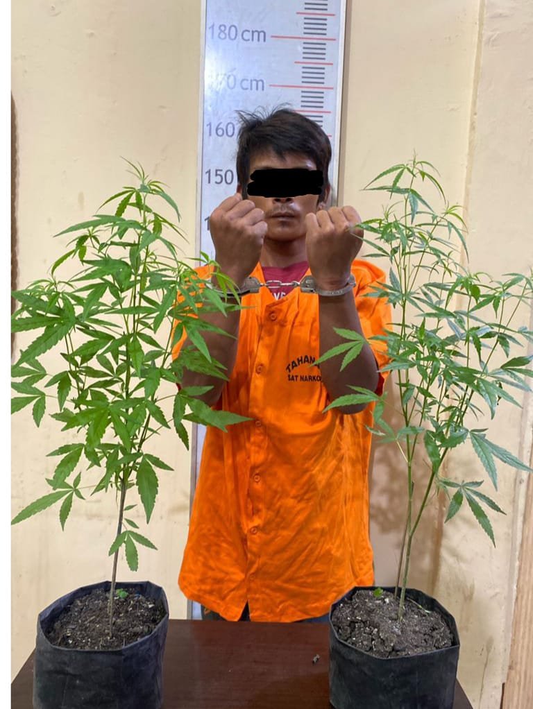 Sat Narkoba Polres Langkat Tangkap Pria ini yang coba coba menanam Ganja dirumahnya