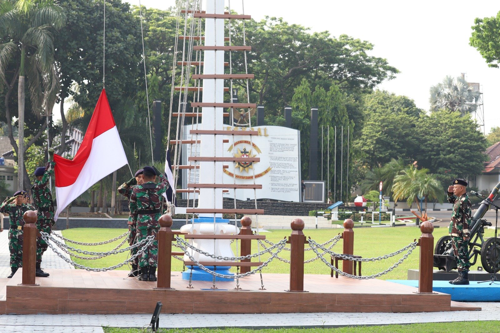 DUTAMEDAN.COM, Jakarta – Sekolah Staf dan Komando TNI Angkatan Laut (Seskoal) melaksanakan Upacara 17-an di bulan November 2023. dengan Inspektur Upacara Kolonel Laut (KH) Dr. Bambang Suharjo, S.Si., M.Si., M.Kom. mewakili Komandan Seskoal (Danseskoal) Laksamana Muda TNI Yoos Suryono Hadi, M.Tr (Han)., M.Tr. Opsla., CHRMP. bertempat di Lapangan Apel Laut Jawa Markas Komando (Mako) Seskoal, Cipulir, Kebayoran Lama, Jakarta Selatan. Jumat (17/11/23).
