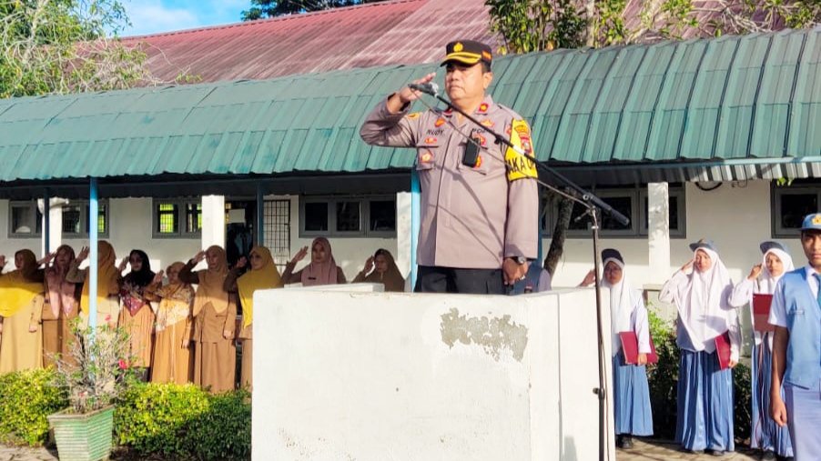 Waka Polres dalam amanatnya menyampaikan, mari tingkatkan disiplin dalam kegiatan belajar dan mengajar serta jadilah siswa-siswi yang teladan menghormati guru dan orang tua.