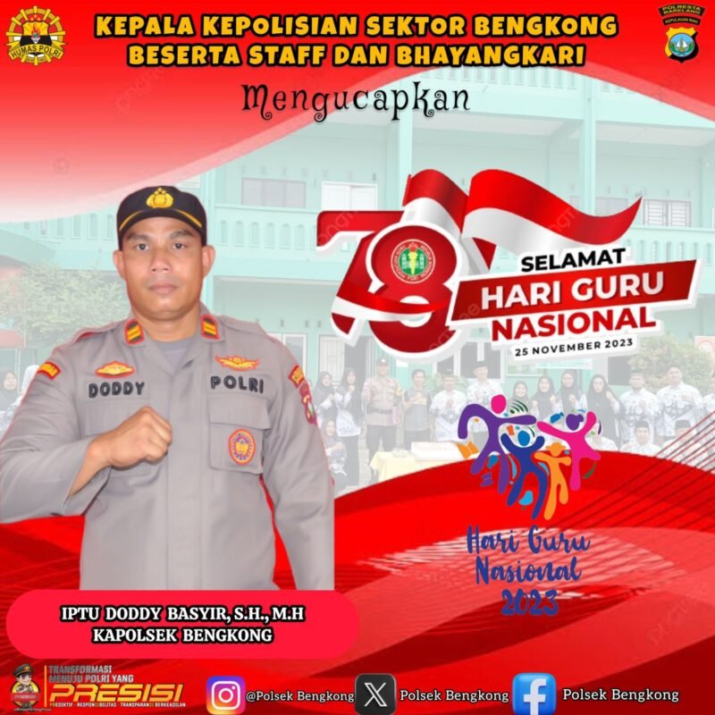 Pada kesempatan ini pun Kapolsek Bengkong mengucapkan selamat memperingati Hari Guru Nasional 2023. Dengan kehadiran Polri di tengah-tengah masyarakat dalam situasi apapun, kata dia, dapat memberikan rasa aman dan selalu di cintai masyarakat.