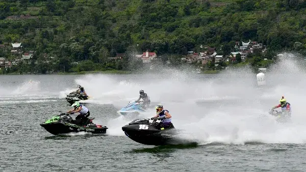 DUTAMEDAN.COM, SAMOSIR – Ribuan wisatawan dan masyarakat memadati kawasan waterfront Pangururan, Samosir, yang menjadi salah satu lokasi balapan Aquabike World Championship 2023. Saat jetski-jetski peserta Aquabike beradu cepat di lintasan sepanjang kurang lebih 1,5 km, sorak sorai penonton yang antusias pun riuh dari ujung ke ujung kawasan waterfront itu.