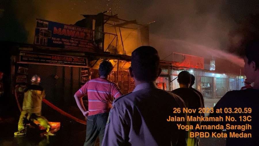 Medan, DUTAMEDAN.COM – Empat unit kios di Jalan Mahkamah Lingkungan VII, Kelurahan Mesjid, Kecamatan Medan Kota, yang terbakar berhasil diselamatkan oleh petugas Pencegah dan Pemadam Kebakaran (P2K) Kota Medan dari amukan siraja merah, Minggu (26/11/2023) pukul 03:00wib.