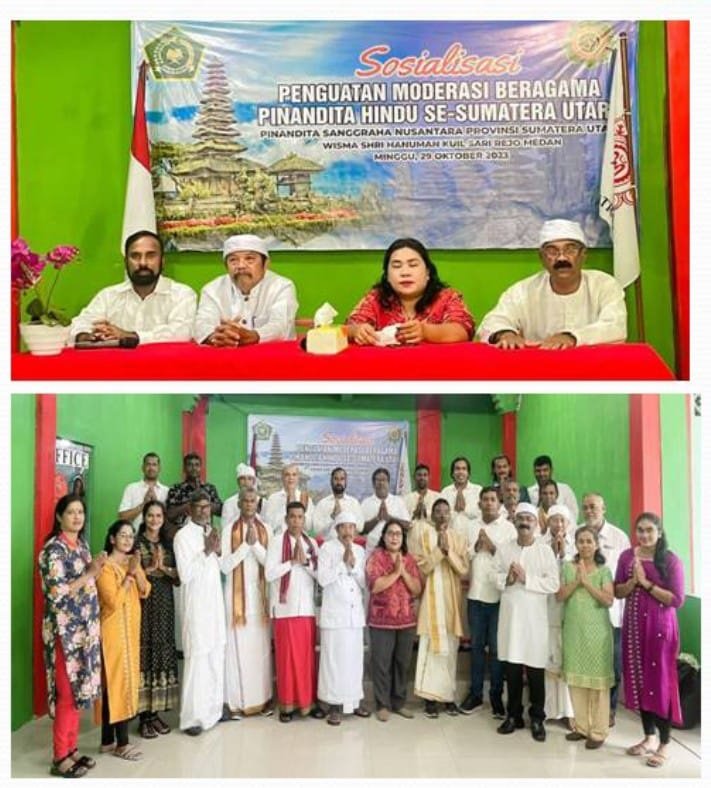 Medan, DUTAMEDAN.COM – Pembimas Hindu memberikan arahan dan bimbingan dalam kegiatan penguatan Moderasi Beragama yang diselenggarakan oleh Pinandita Sanggraha Nusantara (PSN) Sumatera Utara di Gedung Shri Hanuman Kuil, Jalan Karang Sari, Kecamatan Polonia.