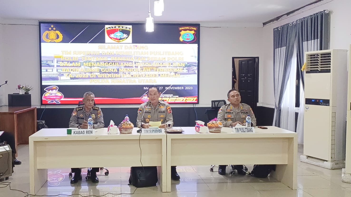 “Kunjungan Tim Supervisi dan Penelitian Puslitbang Polri Tentang Penguatan Peran Polri Dalam Menanggulangi lntoleransi dan Radikalisme Guna Mencegah Terorisme,” kata Kapolrestabes Medan Kombes Pol Valentino Alfa Tatareda, SIK, SH.