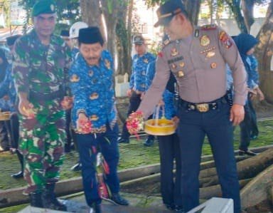 Rangkaian acaranya antara lain berupa peletakan karangan bunga oleh pimpinan upacara dan penaburan bunga ke pusara para pahlawan dan pembacaan doa oleh KUA Kec. Babalan Azhari, SAg. Rangkaian acara tersebut berjalan dengan tertib, aman dan kondusif. (BD)