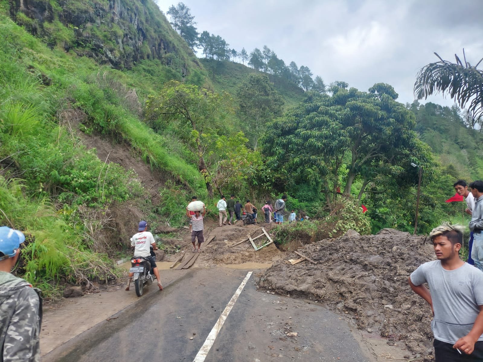 Alat berat juga telah digunakan untuk membuka jalan pada 2 titik lokasi longsor yang cukup parah yang disebabkan hujan yang terus-menerus.