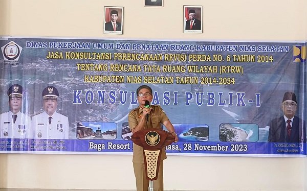 LUAHAGUNDRE MANIAMOLO/NIAS SELATAN, DUTAMEDAN.COM – Pemerintah Kabupaten Nias Selatan melalui Dinas Pekerjaan Umum dan Penataan Ruang (PUPR) menggelar konsultasi publik ke I revisi Perda No.6 tahun 2014 tentang Rencana Tata Ruah Wilayah (RTRW) bertempat di Baga Resort Hotel, Desa Lagundri Kecamatan Luahagundre Maniamolo, Selasa (28/11).