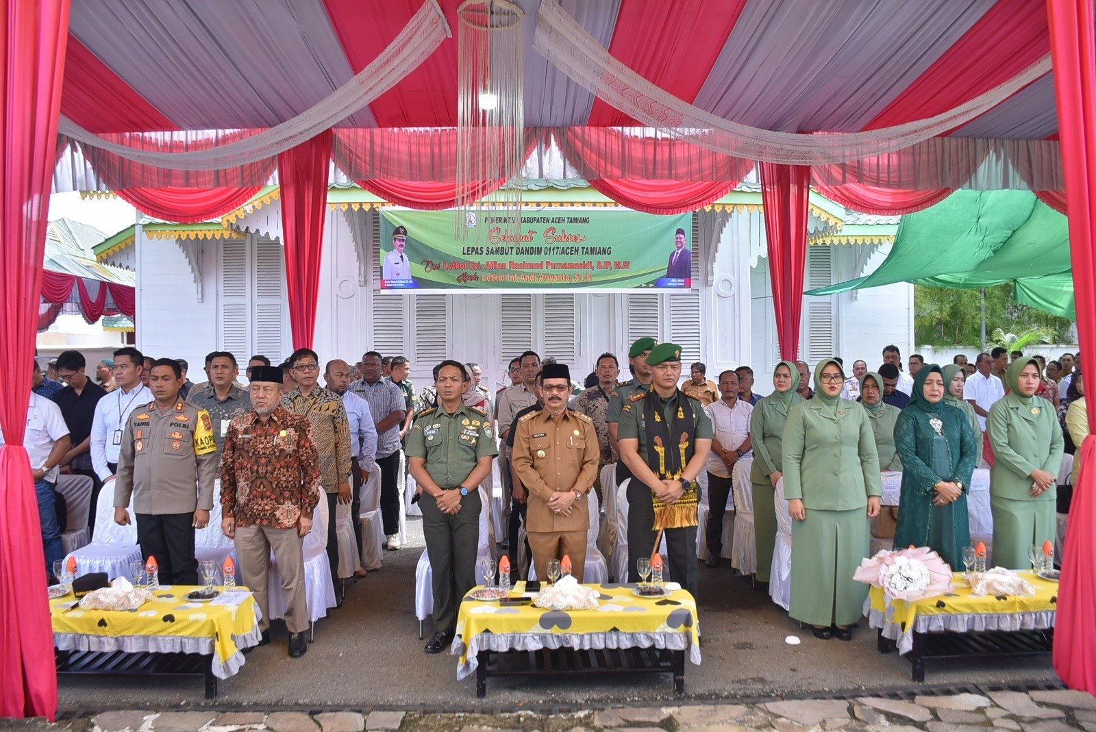 Acara lepas sambut Dandim 0117/Atam turut dihadiri Ketua TP-PKK Aceh Tamiang, Ketua Bhayangkari Polres Aceh Tamiang, Persit Kartika Candra Kirana, Ketua IAD Kejaksaan Negeri Aceh Tamiang dan BUMN/BUMD Aceh Tamiang. (hen).