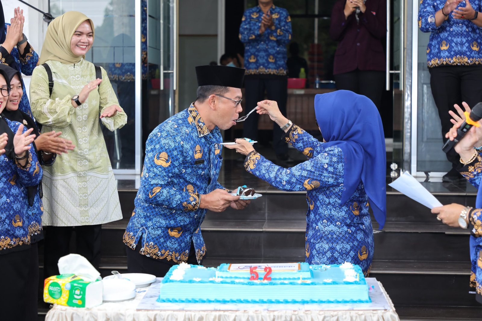 Selanjutnya dr Susanti bersama Pj Sekda Mulyono memotong kue ulang tahun ke-52 Korpri. (nu)