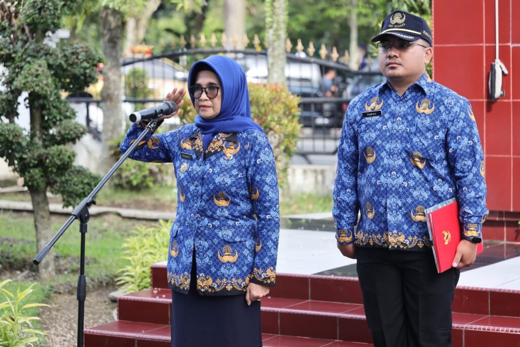 dr Susanti sebagai inspektur upacara membacakan sambutan tertulis Ketua Umum Dewan Pengurus Korpri Nasional Prof Dr Zudan Arif Fakrulloh SH MH.