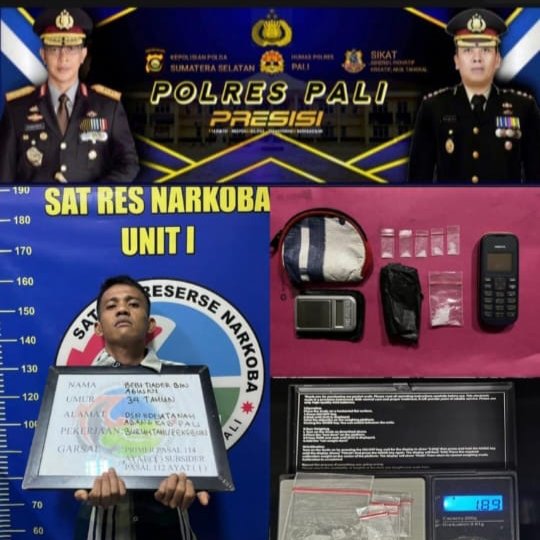 BT (34), warga Dusun II Desa Tanah Abang, Kabupaten Pali, menjadi target operasi, berhasil diamankan bersama 1,89 gram sabu-sabu.