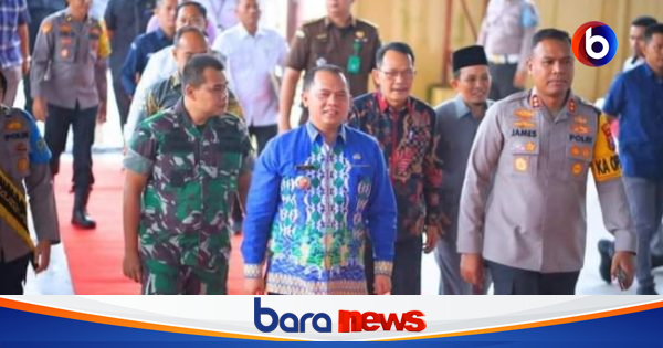 LABUHANBATU, DUTAMEDAN.COM – Bupati Labuhanbatu Erik Adtrada Ritonga hadir dalam deklarasi Pemilu damai tahun 2023-2024 yang diprakarsai oleh Polres Labuhanbatu di Aula Serbaguna Polres Labuhanbatu, Kamis (30/11/2023)