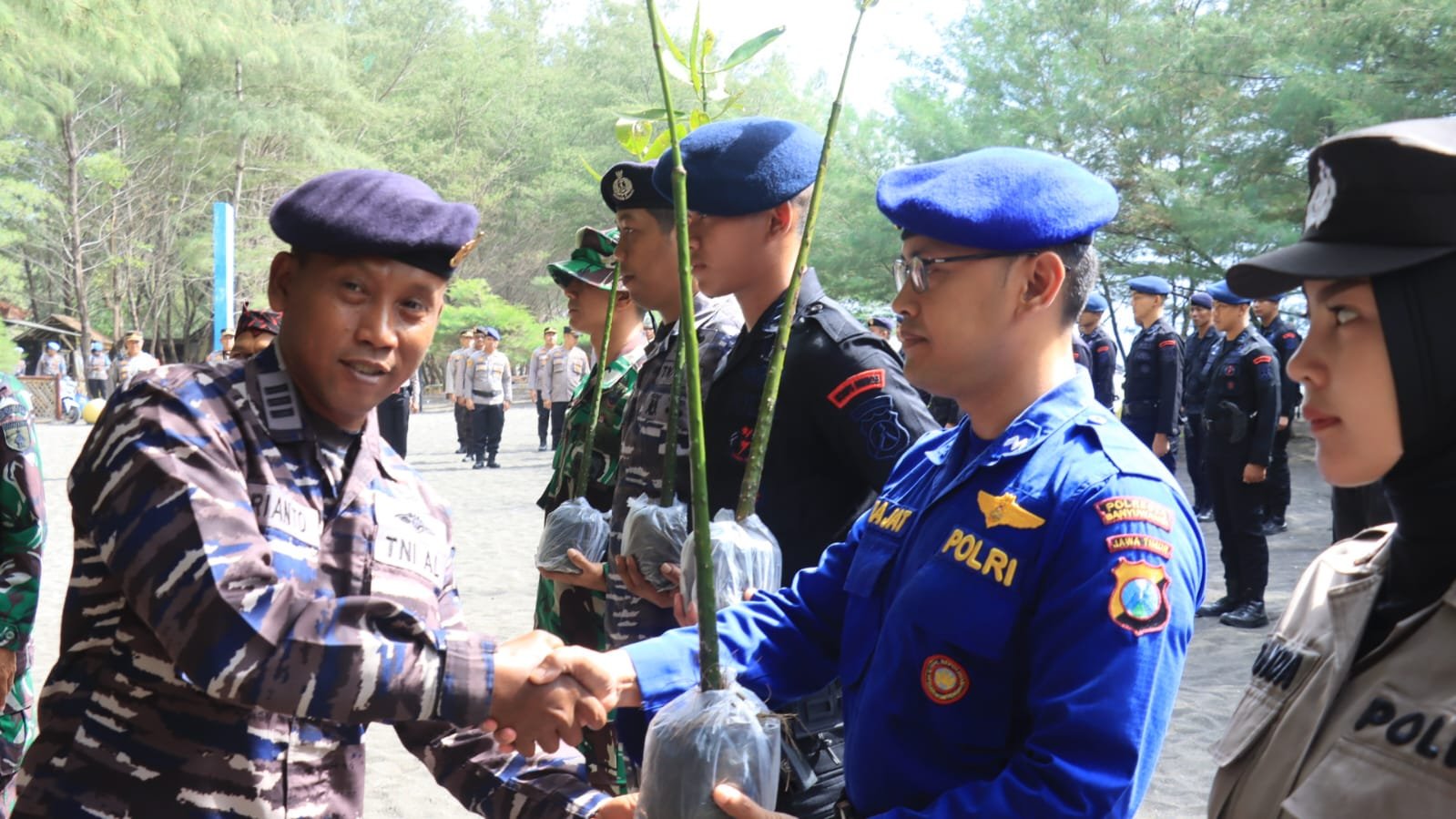 Rayakan HUT Ke-73 Polairud dan HUT Brimob Ke-78; Polisi Tanam 2.000 Ribu Bibit Pohon Mangrove di Banyuwangi