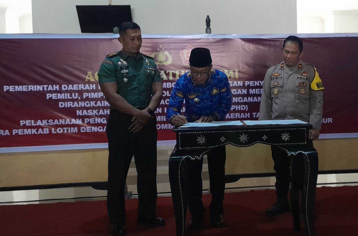 Acara ini juga dirangkaikan dengan penandatanganan Naskah Perjanjian Hibah Daerah (NPHD) Pelaksanaan Pengamanan Pemilihan Kepala Daerah Tahun 2024 antara Pemerintah Kabupaten Lombok Timur dengan Polres Lotim dan Kodim 1615 Lotim.