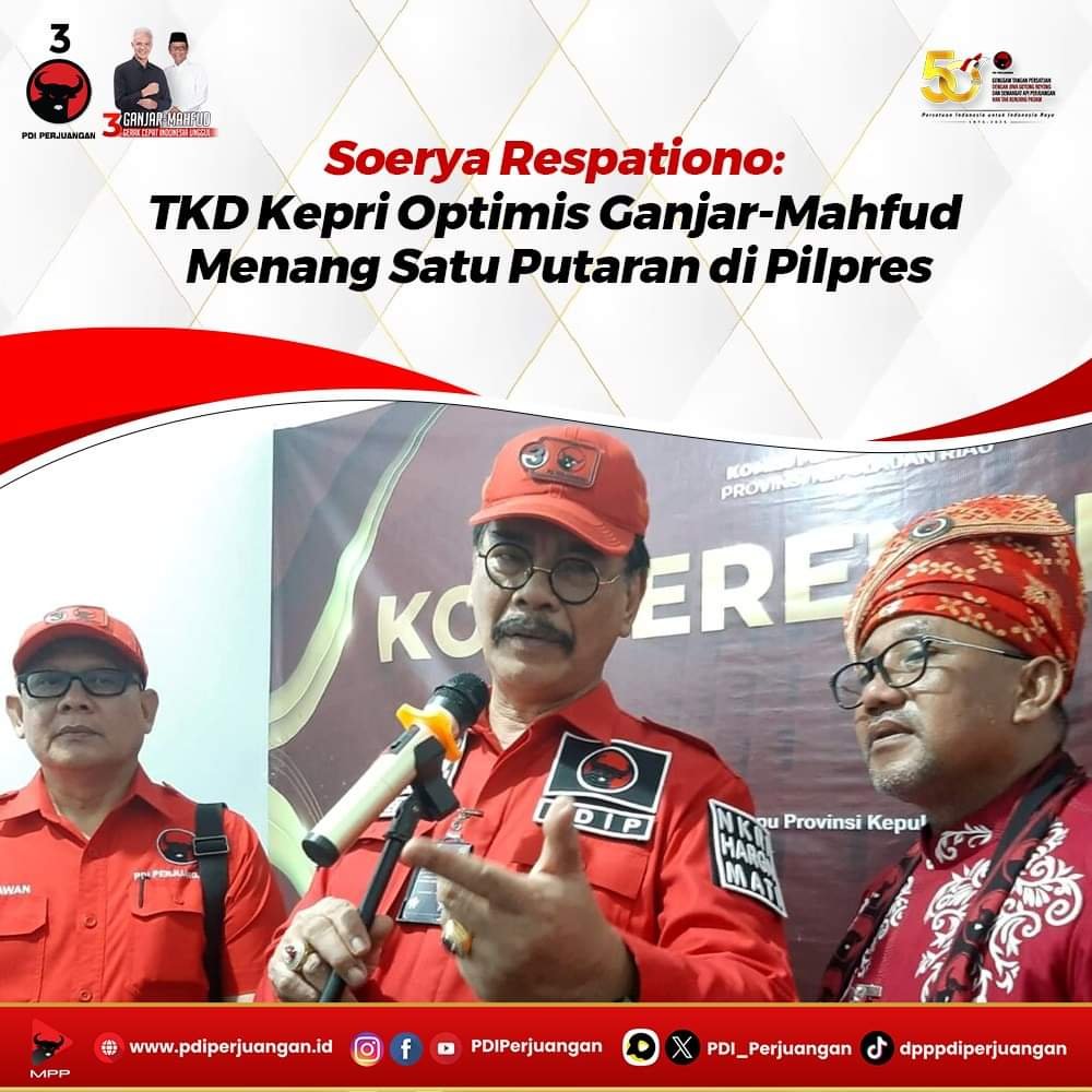 Ketua DPD PDI Perjuangan Kepri, sekaligus ketua TKD Ganjar-Mahfud Kepri, Soerya Respationo menerangkan, kemenangan besar pasangan Ganjar-Mahfud itu di Kota Batam, Tanjungpinang dan Karimun. Soerya mengatakan pihaknya akan bekerja optimal di kabupaten Bintan dan beberapa daerah lainnya.