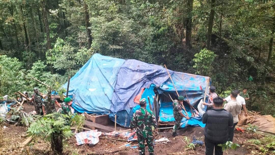 Tak hanya itu gubuk-gubuk itu diratakan oleh puluhan Polisi dan TNI, Jumat (1/12).