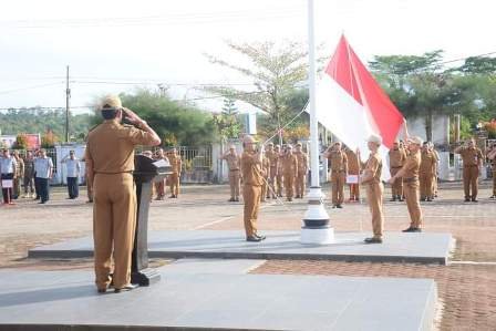 Pelaksanaan upacara penaikan Bendera di lingkungan Pemerintah Kabupaten Nias Barat dihadiri Staf Ahli Bupati, Asisten Sekda, Kepala OPD, Kepala Bagian, pejabat administrator, pejabat pengawas dan staf lainnya. (Yunianto)