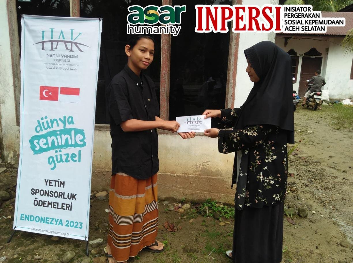 Inisiator Pergerakan Sosial Kepemudaan (Inpersi) Aceh Selatan dan Asar Humanity Aceh hadir menyampaikan Amanah Santunan Beasiswa dari HAK Turkiye kepada padil
