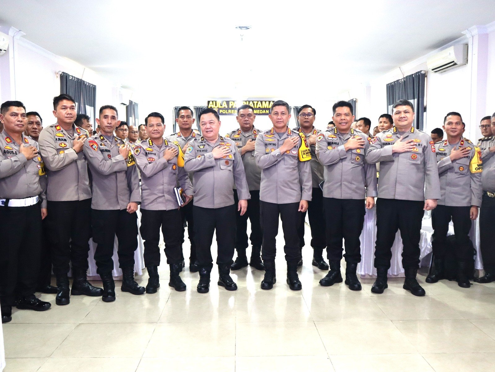 Rombongan Tim Itwasum Polri ini dipimpin Brigjen Pol Drs Yehu Wangsajaya MKom yang diterima di gedung Patriatama lantai dua Polrestabes Medan, Jalan HM Said No.1.