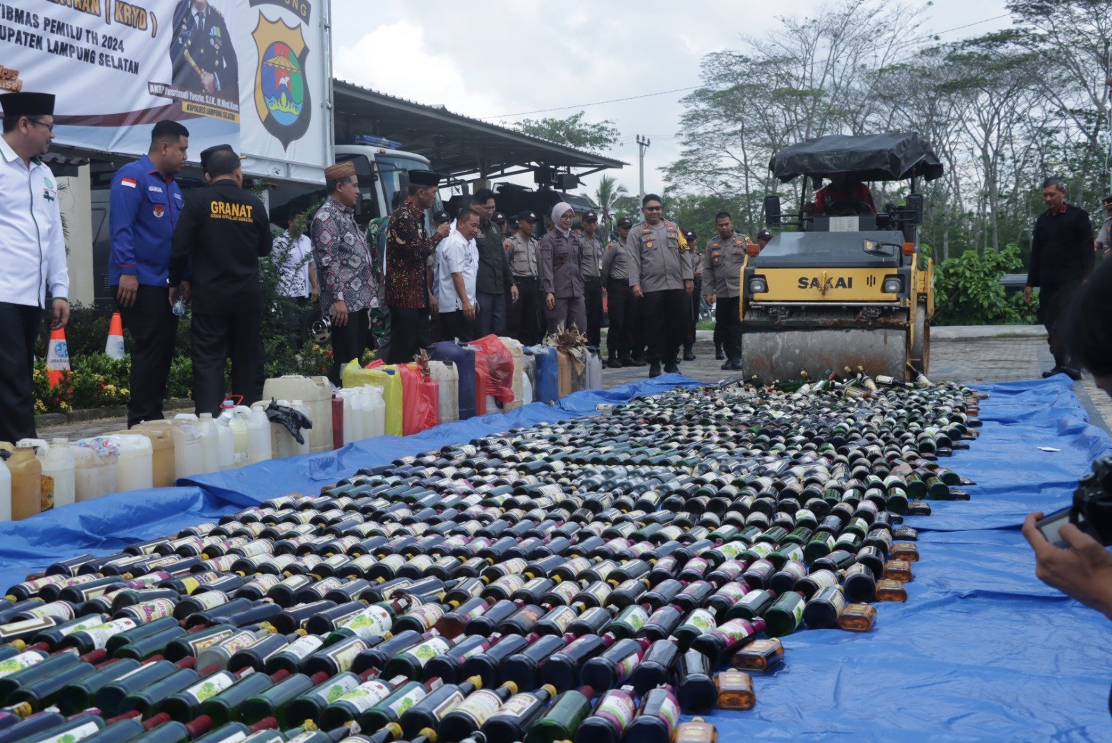 Selain itu, pihak polres Lampung Selatan juga, memusnahkan 1400 botol miras, berbagai merk dan 576 liter tuak, hasil dari operasi-operasi penyakit masyarakat jelang pengamanan pemilu 2024, dan menjelang Natal dan tahun Baru, dari masing-masing Polsek.