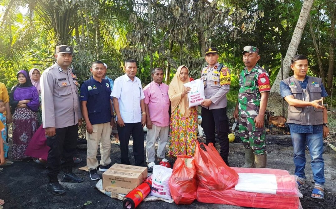 Kapolsek Pantee Bidari Serahkan Bantuan Tanggap Darurat Kepada Korban Kebakaran
