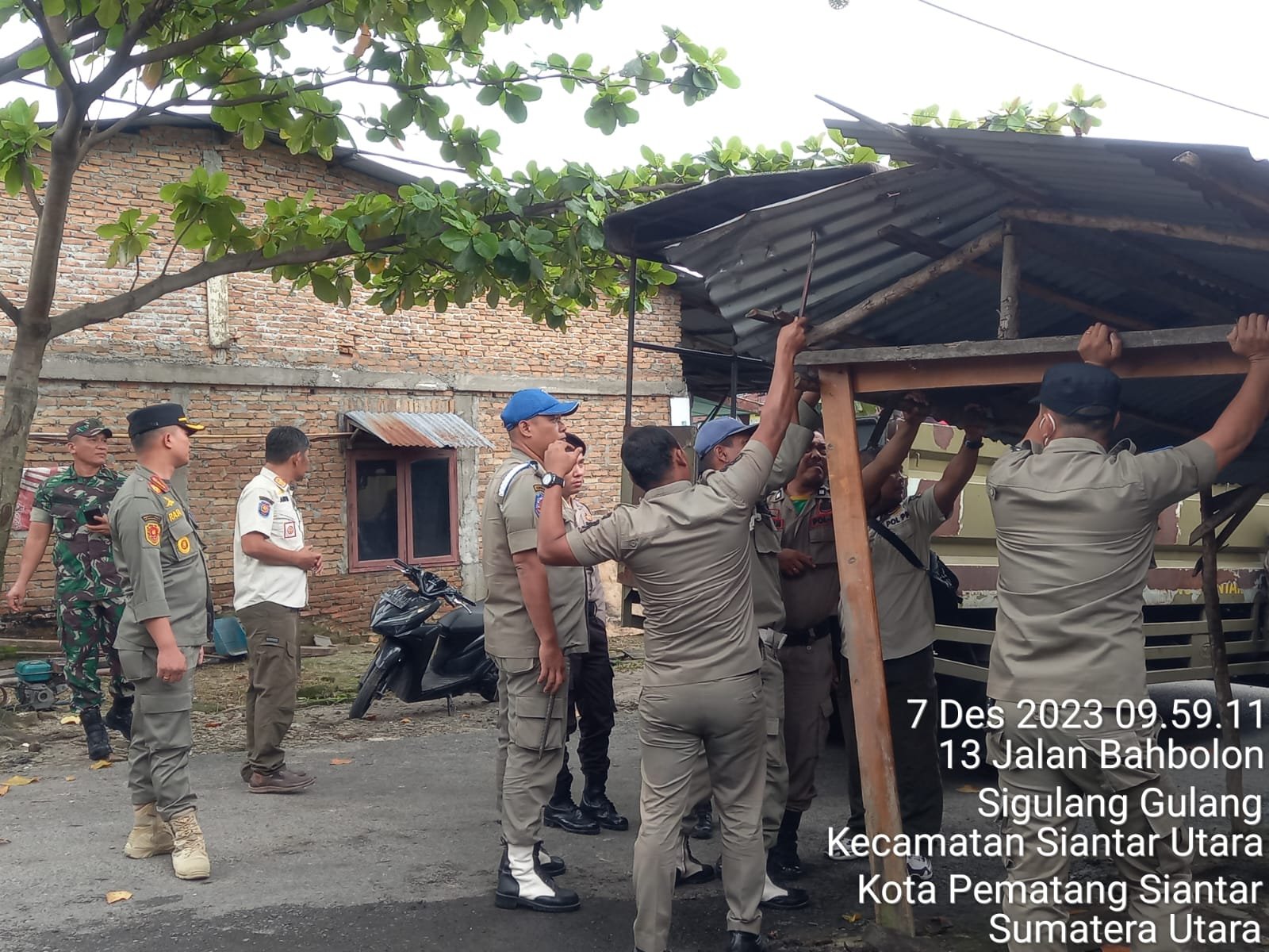 Pembongkaran kios tersebut sesuai Surat Perintah Tugas (SPT) Kepala Sat PP Kota Pematang Siantar Nomor: 800.1.11.1/1753/SATPOL/XII/2023 berdasarkan Surat Keputusan Wali Kota Pematang Siantar Nomor: 300.1.1/1634/XII/2023 tentang Penetapan dan Perintah Pembongkaran.