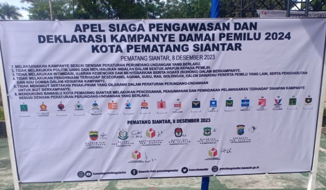 Bawaslu Kota Siantar melakukan deklarasi, harapannya, agar peserta Pemilu 2024 melaksanakan kampanye sesuai peraturan perundang-undangan, tidak melakukan politik uang (money politic), atau tidak menjanjikan imbalan dalam bentuk apapun kepada pemilih.