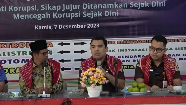 Sementara calon jaksa Jimmi Lumbangaol menyampaikan tentang beberapa pasal dan aturan yang menjerat pelaku tindak pidana korupsi. Jimmi menyampaikan bahwa peserta didik SMK N 1 Merdeka memiliki kesempatan yang sama untuk masuk dan bergabung dengan Kejaksaan RI.