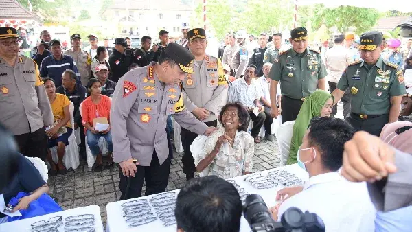 DUTAMEDAN.COM – Kapolri Jenderal Polisi Drs Listyo Sigit Prabowo dan Panglima TNI Jenderal Agus Subiyanto memberikan bantuan kesehatan serta bantuan sosial kepada masyarakat di Maluku. Bantuan tersebut diberikan dalam rangka mendekatkan diri dengan masyarakat dan mengajak terwujudnya Pemilu 2024 aman dan damai.